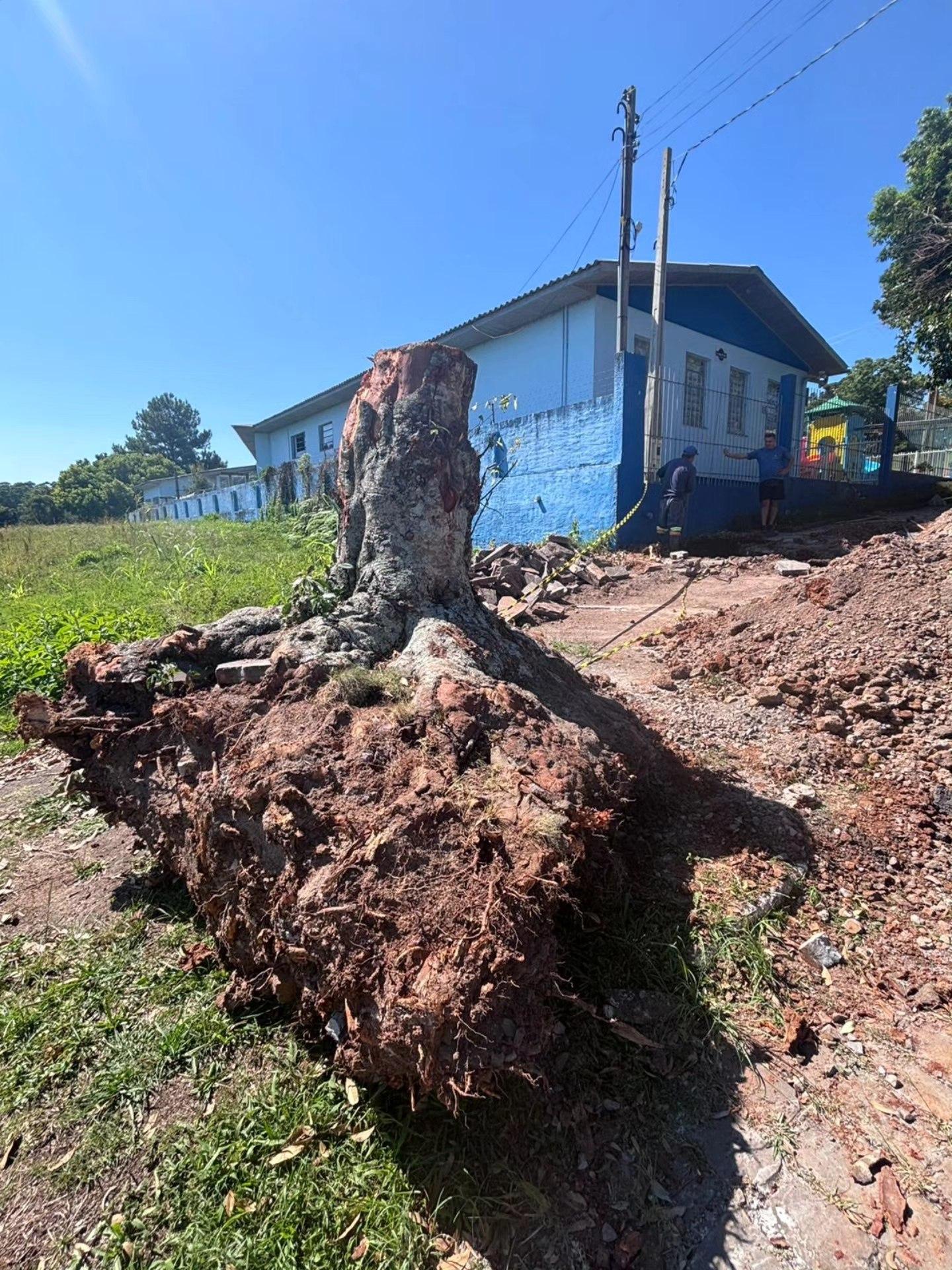 A direção da Creche Gasparzinho foi previamente comunicada sobre a situação e, após ciência da avaliação técnica realizada, manifestou concordância com a retirada da árvore para viabilizar a solução do problema.